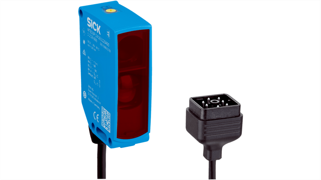 Sensore fotoelettrico rettangolare con soppressione di sfondo, gamma di rilevamento 2000 mm, uscita PNP/NPN, collegamento elettrico tramite cavo a 7 pin, grado di protezione IP65, temperatura operativa da -40 a +60 gradi Celsius, tempo di risposta 0,5 ms, corrente massima 100 mA, sorgente di luce a infrarossi, montaggio a pannello, materiale custodia in plastica, certificazione CE e cULus.