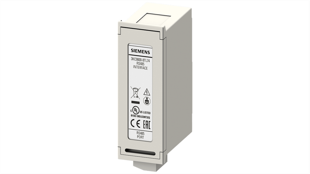 Sezionatore portafusibili Siemens, modello Sentron 3KC9, codice costruttore 3KC9000-8TL74, approvazione EAC, compatibile con moduli di espansione Siemens ATC6, interfaccia RS485, progettato per applicazioni industriali. Specifiche tecniche: range, serie 3KC9.