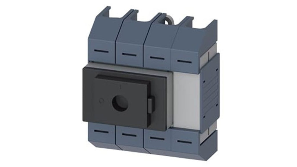 Sezionatore con interruttore Siemens, 4 poli, corrente massima 80A, montaggio su guida DIN, protezione IP10, potenza nominale 18.5kW, meccanismo di azionamento anteriore, unità completa senza maniglia. Approvazione EAC e CE. Codice costruttore 3KD0440-2LG20-3.