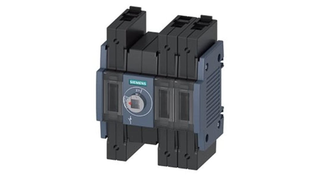 Sezionatore con interruttore Siemens, 3 poli, corrente massima 100A, montaggio su guida DIN, grado di protezione IP20, potenza nominale 55kW, meccanismo di azionamento anteriore, unità di base senza terminale della scatola maniglia, approvazione EAC, approvazione CE.