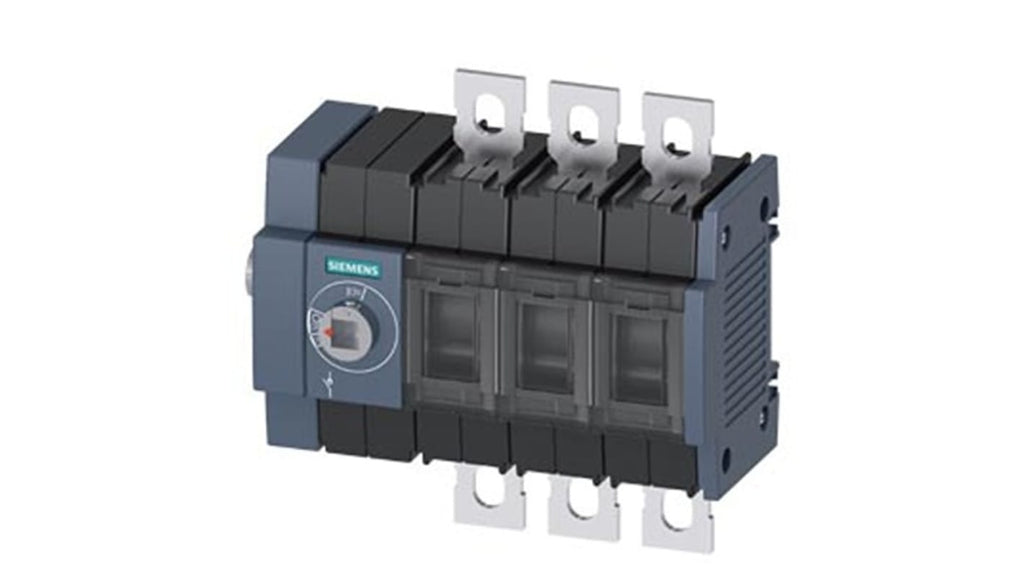 Sezionatore con interruttore Siemens, 3 poli, corrente massima 200A, montaggio su guida DIN, protezione IP00 e IP20, potenza nominale 110kW, meccanismo di azionamento laterale a sinistra, unità di base senza maniglia, approvazione EAC e CE. Adatto per interruttore principale, sezionatore interruttore, interruttore di sicurezza e interruttore di manutenzione.