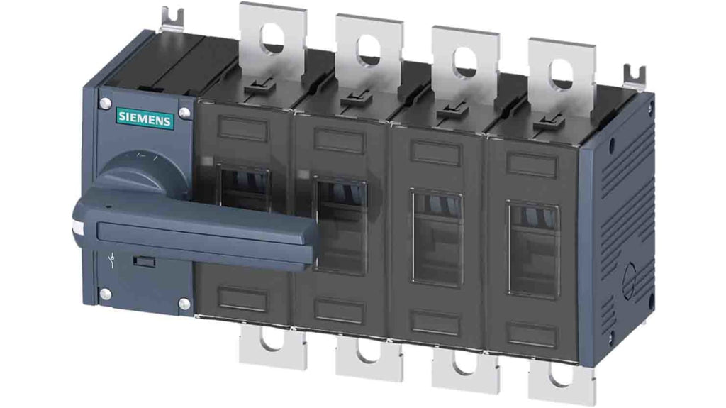 Sezionatore con interruttore Siemens, corrente massima 250 A, 4 poli, montaggio a vite, configurazione 6NA/6NC, classe di protezione IP20, tensione di isolamento 1000 V, resistenza alle sovratensioni 12 kV, temperatura operativa da -25 a +70 gradi, vita meccanica 10000 cicli, design del connettore piatto, serie SENTRON 3KD.