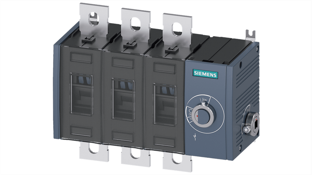 Sezionatore con interruttore Siemens, 3 poli, corrente massima 315A, montaggio superficiale, classe di protezione IP00, potenza nominale 12W, configurazione stato normale NO, serie 3KD, modello 3KD4034-0PE40-0. Dispositivo per protezione e commutazione, meccanismo di funzionamento anteriore con posizione centrale.