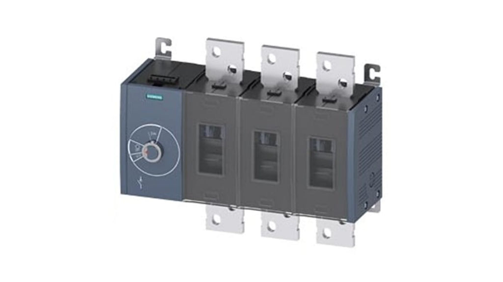 Sezionatore con interruttore Siemens, 3 poli, corrente massima 1000A, tipo fisso, protezione IP00 e IP20, potenza nominale 710kW, meccanismo di azionamento laterale a sinistra, unità di base senza maniglia, approvazione EAC e CE. Adatto per interruttore principale, sezionatore interruttore, interruttore di sicurezza e interruttore di manutenzione. Codice costruttore 3KD5034-0RE10-0.