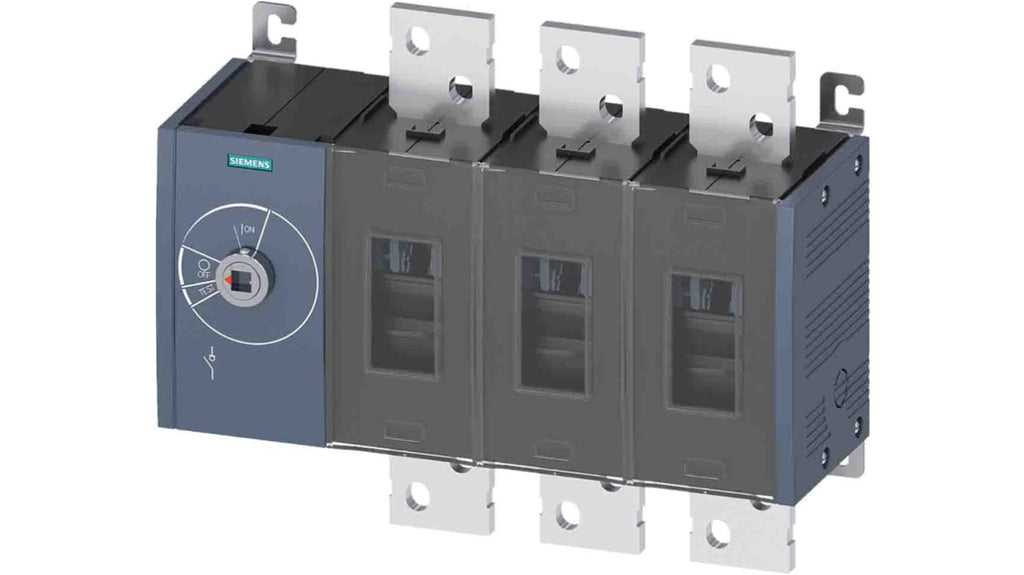 Sezionatore con interruttore Siemens, corrente massima 1600 A, 3 poli, montaggio a vite, configurazione 8NA/8NC, classe di protezione IP20, tensione di isolamento 1000 V, temperatura operativa da -25 a +70 gradi, resistenza alle sovratensioni 12 kV, vita meccanica 6000 cicli, vita elettrica 500 cicli, design del connettore piatto. Codice costruttore 3KD5430-0RE10-0.