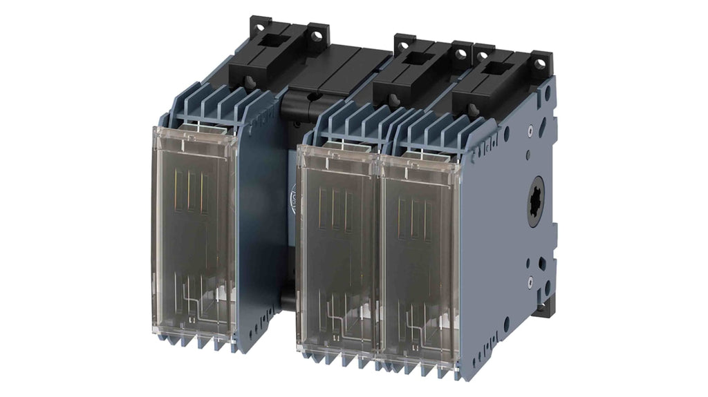 Sezionatore portafusibili Siemens, corrente massima 63 A, configurazione a 3 poli, fusibile NH00, NH000, montaggio su guida DIN, classe di protezione IP20, tensione di isolamento 1000 V, temperatura operativa da -25 a +70 gradi, resistenza alle sovratensioni 12 kV, vita meccanica 15000 cicli, vita elettrica 10000 cicli, contatti ausiliari disponibili. Modello 3KF1306-0MB11.