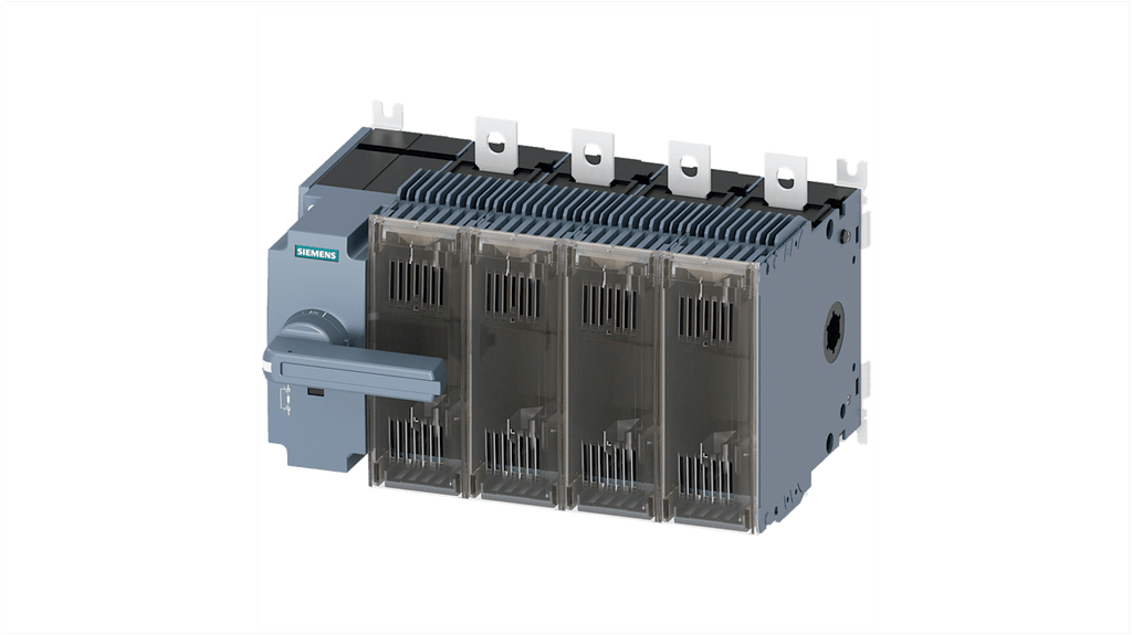 Sezionatore portafusibili Siemens 3KF3425-2LF11, corrente massima 250 A, 4 poli, fusibile NH0, NH1, progettato per applicazioni complesse con fusibili HRC LV. Protezione contro sovraccarichi e cortocircuiti, unità base con maniglia, serie SENTRON 3KF3, corrente nominale fusibile 33 700 A.