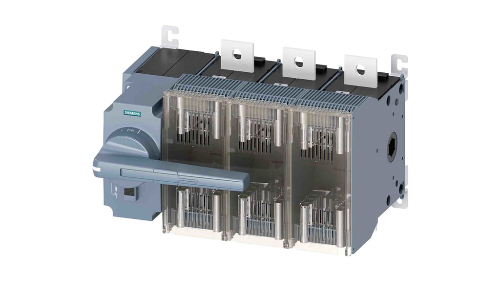 Sezionatore portafusibili Siemens, corrente massima 800 A, configurazione a 3 poli, montaggio superficiale, fusibili NH2 e NH3, resistenza alle sovratensioni 12 kV, vita meccanica 6000 cicli, vita elettrica 1500 cicli, temperatura operativa da -25 a +70 gradi Celsius, colore grigio, contatti ausiliari disponibili. Prodotto della serie 3KF, ottimizzato per applicazioni complesse.