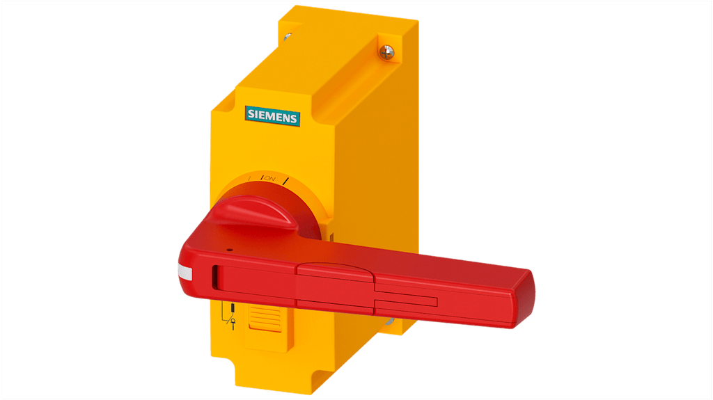 Selettore lucchettabile per 3KF, meccanismo di azionamento diretto, colore rosso/giallo, bloccabile in posizione OFF con tre lucchetti, accessorio per serie SENTRON, approvazione EAC e CE. Codice costruttore 3KF9401-2AA00.