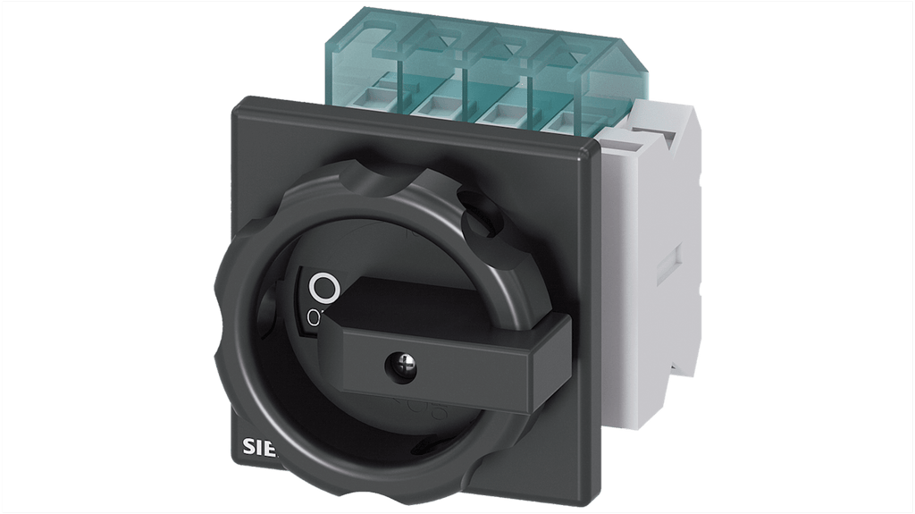 Sezionatore con interruttore Siemens, 3 poli, corrente massima 16A, configurazione 2NA, 2NC, meccanismo di azionamento rotativo, classe di protezione IP65, temperatura d'esercizio da -25 a 55 gradi Celsius, serie SENTRON, modello 3LD Switch Disconnector. Codice costruttore 3LD2003-1TP51.