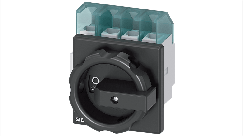 Interruttore di isolamento a 4 poli, corrente nominale 25 A, tensione d'esercizio 690 V c.a., vita meccanica 100000 cicli, vita elettrica 6000 cicli, temperatura operativa da -25 a +55 gradi Celsius. Prodotto della serie 3LD, marchio Siemens, progettato per garantire la sicurezza delle apparecchiature elettriche.