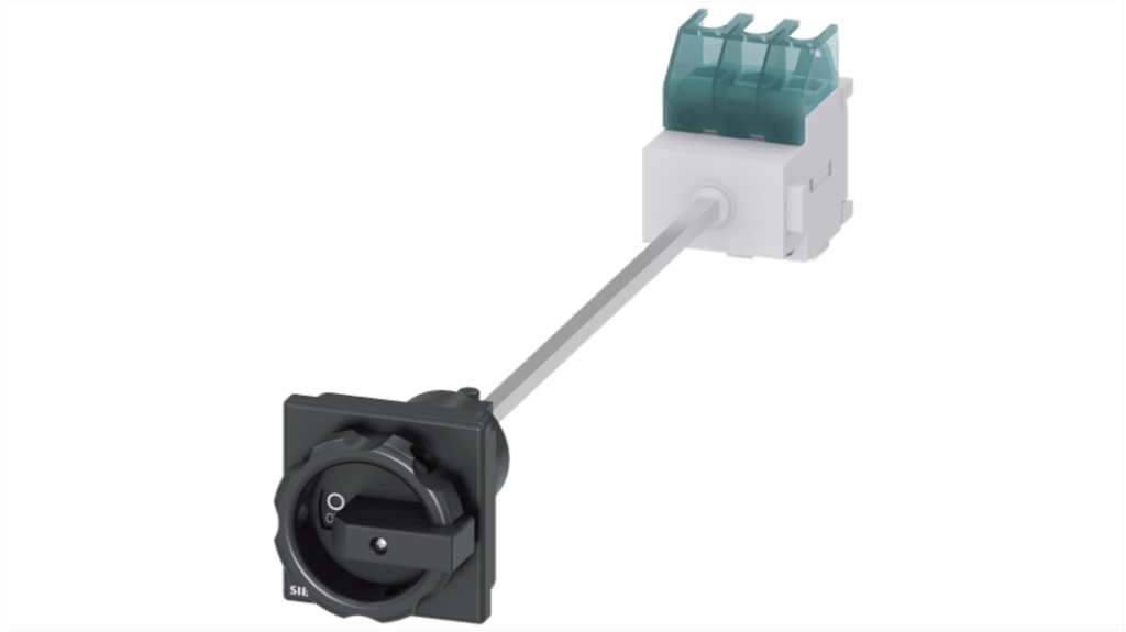 Interruttore sezionatore Siemens 32A 3LD, configurazione a 3 poli, montaggio a pannello con 4 fori, meccanismo rotante, manopola rotante corta, grado di protezione IP65, potenza nominale 11,5kW. Codice costruttore 3LD2215-0TK51.
