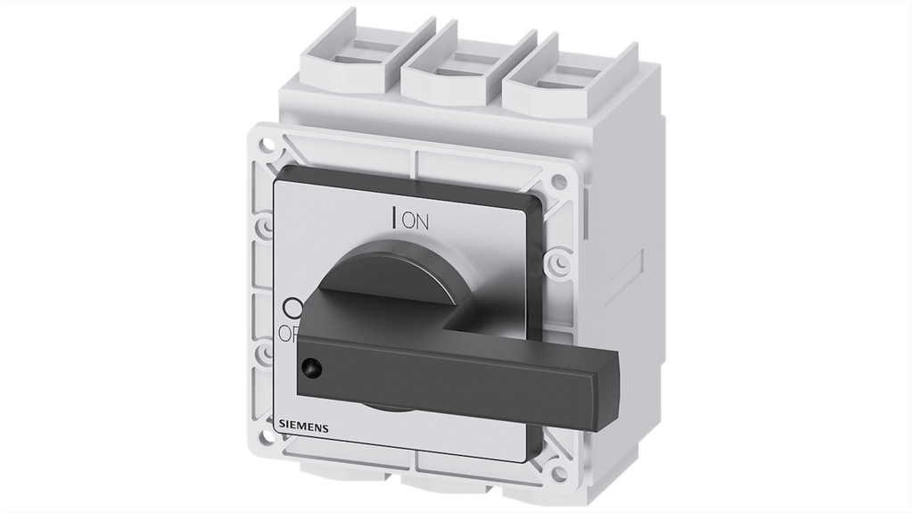 Interruttore di isolamento Siemens 3LD2305-0TK11, 3 poli, corrente massima 160A, grado di protezione IP65, montaggio anteriore, meccanismo di azionamento a manopola con impugnatura nera, temperatura operativa da -25 a 55 gradi Celsius, serie 3LD, range SENTRON. Dimensione del sezionatore 5.