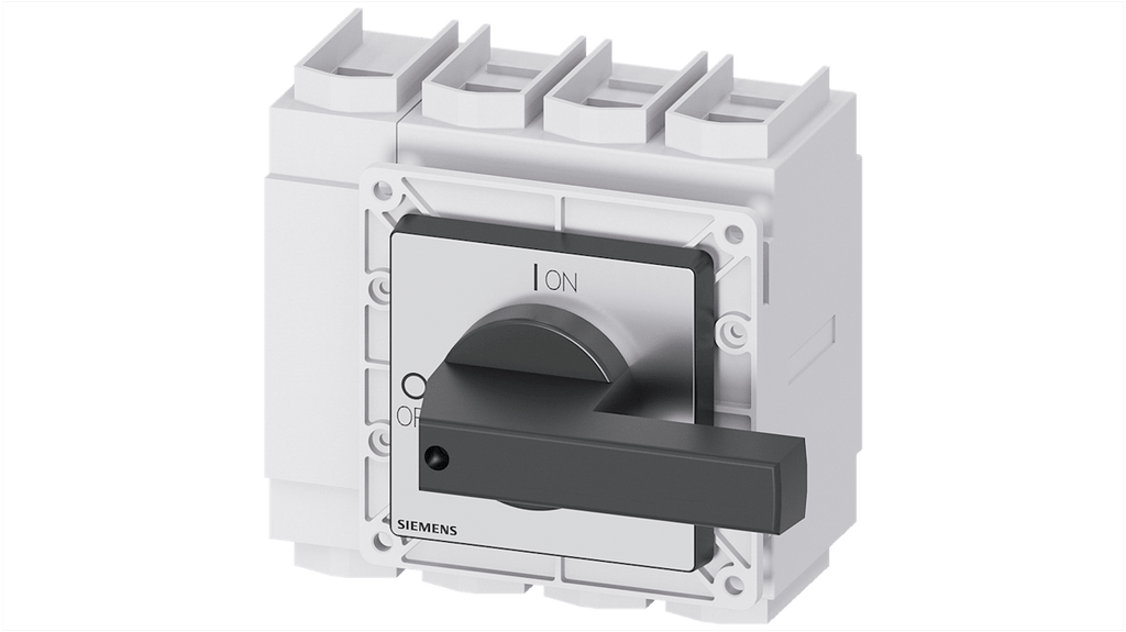 Interruttore di isolamento a 4 poli, corrente nominale 160 A, tensione d'esercizio 690 V c.a., vita meccanica 100000 cicli, vita elettrica 6000 cicli, temperatura operativa da -25 a +55 gradi Celsius. Prodotto della serie SENTRON, marchio Siemens, progettato per garantire la sicurezza delle apparecchiature elettriche.