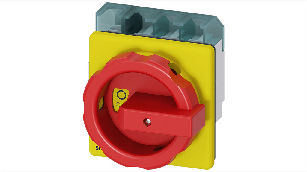 Sezionatore con interruttore Siemens, corrente massima 63A, 4 poli, configurazione stato normale NO, fusibile RK5, grado di protezione IP65, integrato. Marchio Siemens, serie 3LD, range SENTRON.