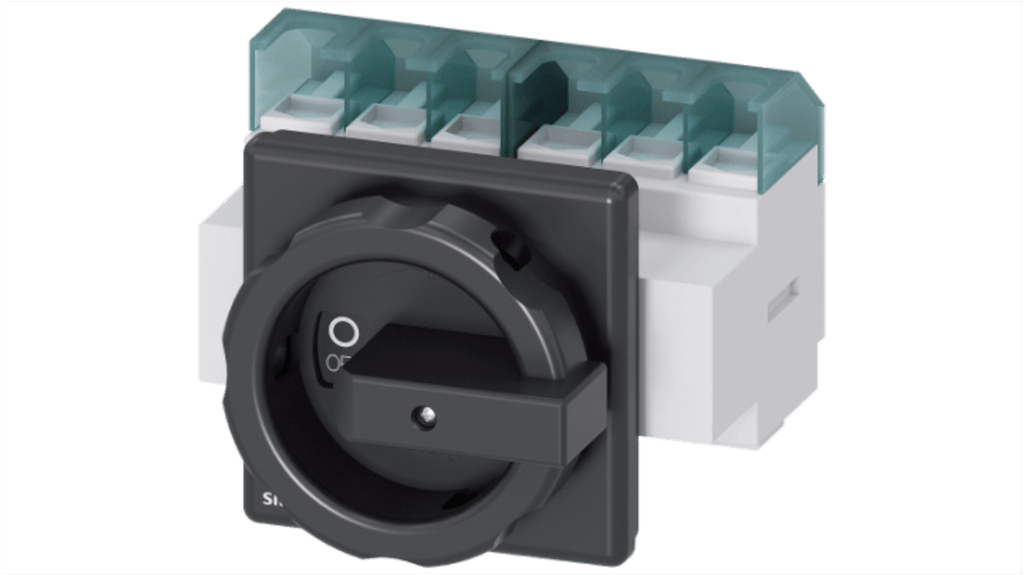 Interruttore sezionatore Siemens 63A 3LD, configurazione a 6 poli, montaggio a pannello con 4 fori, meccanismo rotante, manopola rotante corta, protezione IP65, potenza nominale 22kW. Adatto per applicazioni industriali, garantisce un'ottima affidabilità e sicurezza operativa.