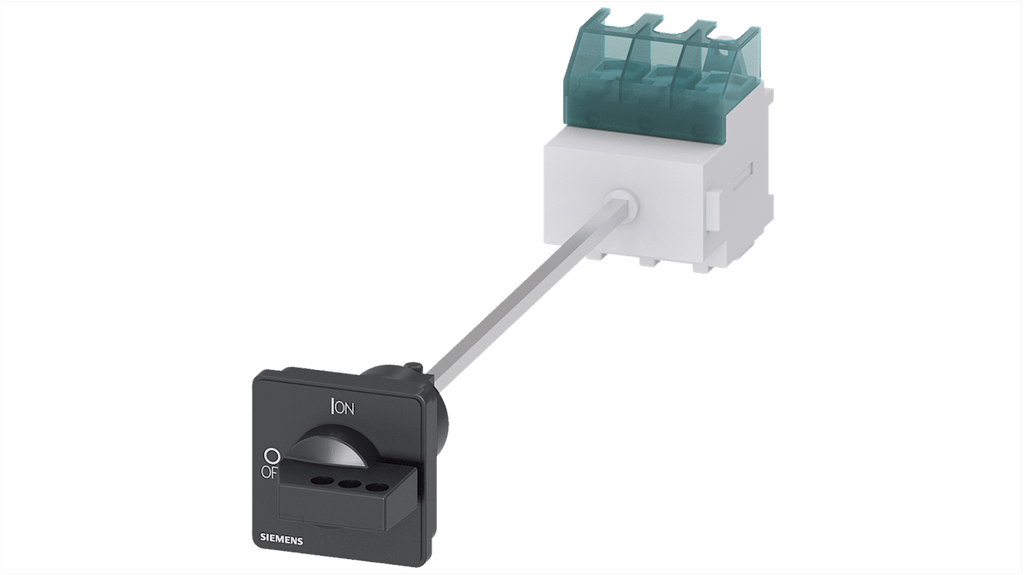 Sezionatore con interruttore Siemens, 3 poli, corrente massima 63A, corrente nominale fusibile 63A, meccanismo di azionamento rotativo, classe di protezione IP65, temperatura d'esercizio da -25 a 55 gradi Celsius, serie SENTRON, modello 3LD Switch Disconnector.