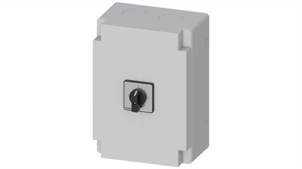 Interruttore sezionatore Siemens 100A 3LD, configurazione a 3 poli, montaggio a pannello, grado di protezione IP65, meccanismo a manopola, incapsulamento in plastica sagomata per pressacavo metrico, potenza nominale 37kW. Codice costruttore 3LD2766-7UB01.