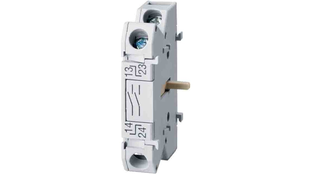 Blocco interruttore ausiliario, 2 contatti, 2 NA, montaggio a pavimento, serie 3LD, accessorio per interruttore di spegnimento di emergenza e principale 3LD2, installazione in morsettiere di distribuzione. Marchio Siemens, codice costruttore 3LD9200-6C.