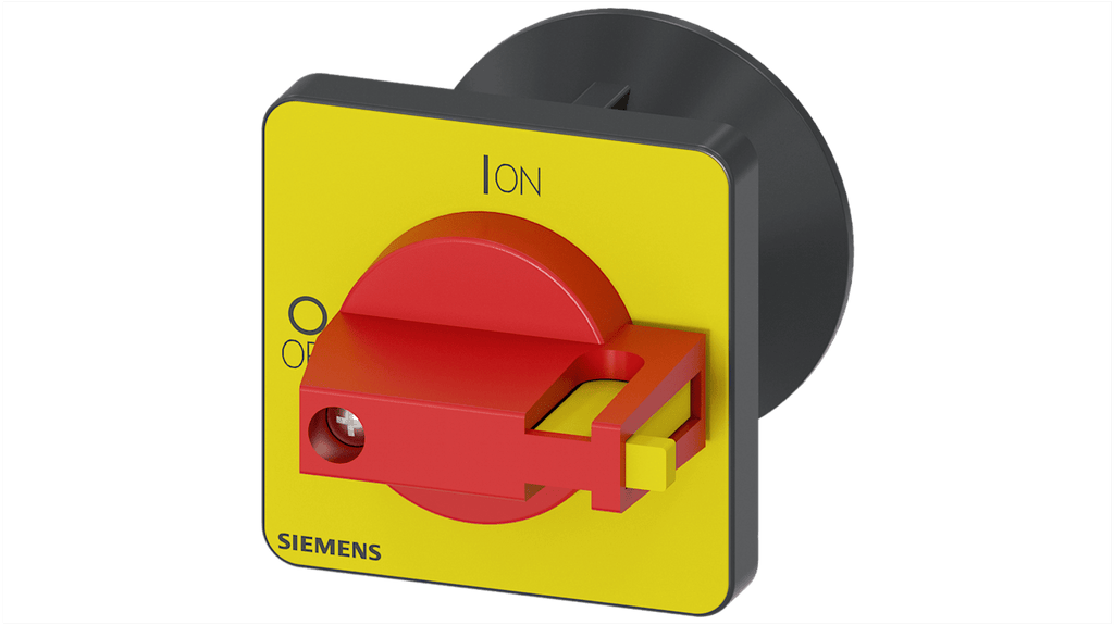 Selettore rotante Siemens per 3LD3, montaggio centrale, foro di montaggio su piastra frontale 48x48 mm, colore rosso, parte di accoppiamento per albero 6x6 mm, approvazione UL ed EAC, serie SENTRON.