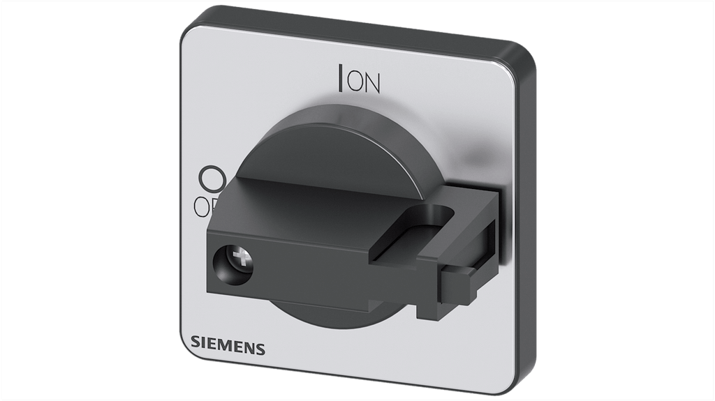 Manopola rotante Siemens per sezionatore di carico. Montaggio su piastra frontale nero 48x48 mm, foro centrale da 22,5 mm per albero 6x6 mm. Colore giallo, serie SENTRON. Approvazione UL ed EAC. Accessorio compatibile con 3LD3.