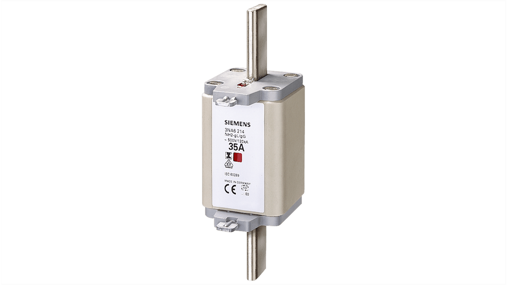 Fusibile NH2 con linguette centrate, Siemens, 315A, tensione nominale 500V ca, standard IEC 60269, categoria gG, velocità F. Contatto di commutazione placcato argento, anti-corrosione, montaggio verticale preferibile, alette di presa isolate. Classe di protezione IP20 con conduttori collegati. Dimensioni: lunghezza 151mm, lunghezza corpo 74mm, spessore corpo 58mm. Design 3NA6, codice costruttore 3NA6252.