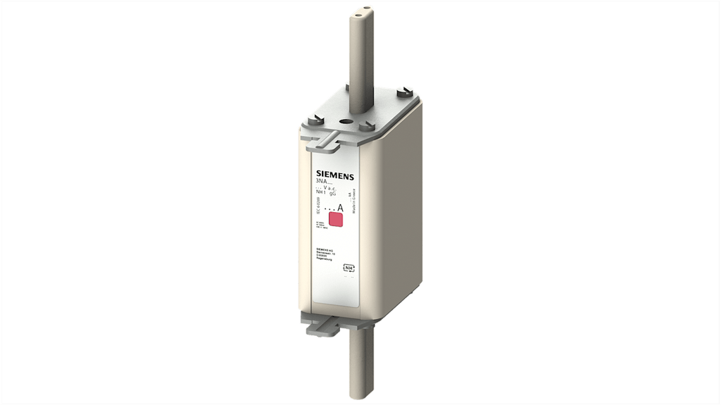 Fusibile con linguette centrate, Siemens, 125A, fusibile NH1, tensione nominale 690V, standard IEC 60269, categoria gG. Capacità di interruzione 120kA, indicatori combinati e alette di presa sotto tensione. Minore sollecitazione alle apparecchiature a valle, livello di selettività finemente classificato per uso ottimale delle sezioni trasversali dei cavi. Codice costruttore 3NA7132-6.