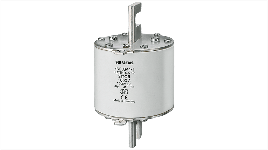 Fusibile con linguette ad asola, Siemens, 800A, fusibile NH3, cat. aR 400V. Amperaggio 800A, tensione nominale 400V, categoria di applicazione aR. Caratteristiche di scollegamento ultra-rapido, progettato per proteggere dispositivi come sistemi UPS e soft starter per motori. Prodotto della gamma Siemens Sentron, ideale per impianti industriali e centri dati. Codice costruttore 3NC3438-1U.