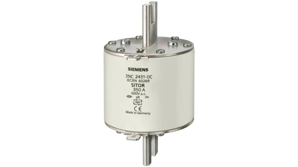 Fusibile NH a semiconduttore, 150A, Siemens. Dimensione NH3, tensione nominale 690 / 440V ca/cc. Protegge semiconduttori di potenza da cortocircuiti con scollegamento super rapido, elevato fattore di carico variabile, alto livello di sicurezza operativa. Testato per dissipazione di calore e carico di corrente massimo. Codice costruttore 3NC8423-0C.