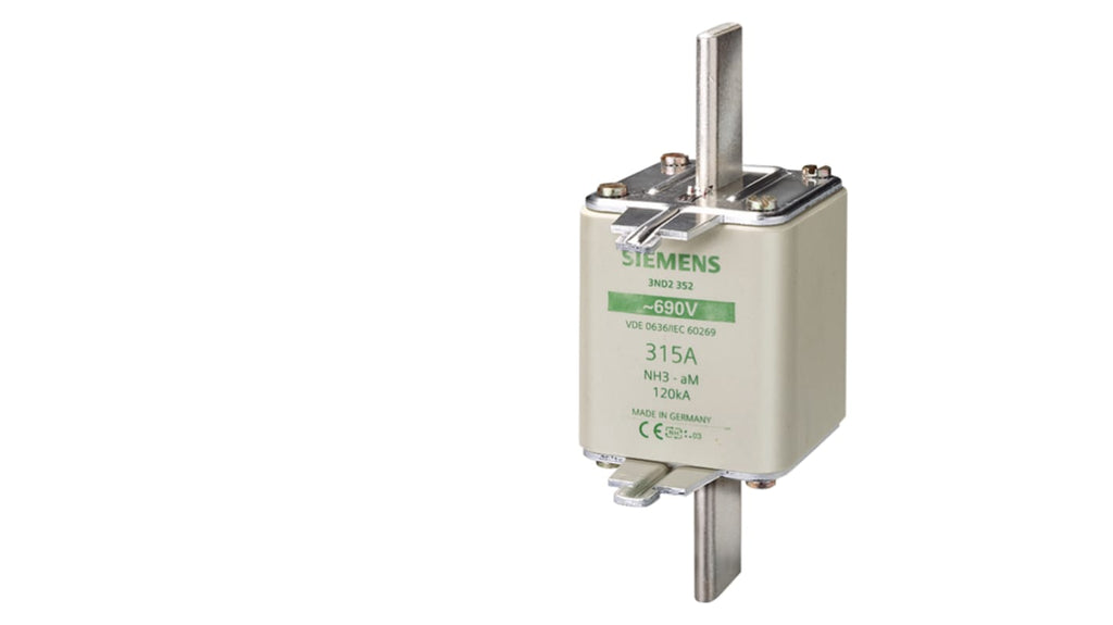 Fusibile NH Siemens, 630A, per protezione di impianti industriali e commerciali, classe di funzionamento NH3, tensione nominale 690 / 440V ca/cc, dotato di alette per impugnatura sotto tensione, pin di contatto placcati in argento, indicatore anteriore. Codice costruttore 3ND1372.