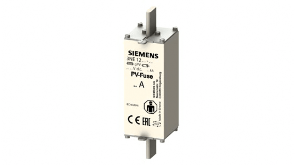 Fusibile con linguette centrate, Siemens, 160A, fusibile NH1XL, cat. gPV 1.5kV. Amperaggio 160A, dimensione fusibile NH1XL, tensione nominale 1.5kV, categoria di applicazione gPV. Prodotto per distribuzione dell'alimentazione in impianti industriali, centri dati e aeroporti. Contatti a lama per connessione sicura.