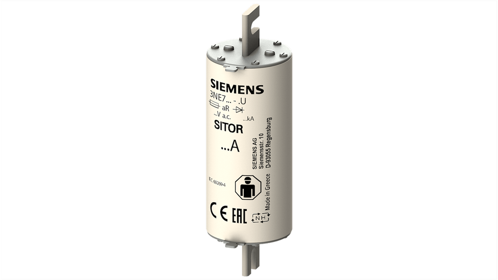 Fusibile con linguette ad asola, Siemens, 710A, fusibile NH3, categoria aR 2kV. Collegamento fusibile SITOR con contatti a lama, scollegamento ultra-rapido, ottima protezione per sistemi UPS e soft starter per motori. Specifiche: amperaggio 710A, dimensione fusibile NH3, tensione nominale 2kV, categoria di applicazione aR.