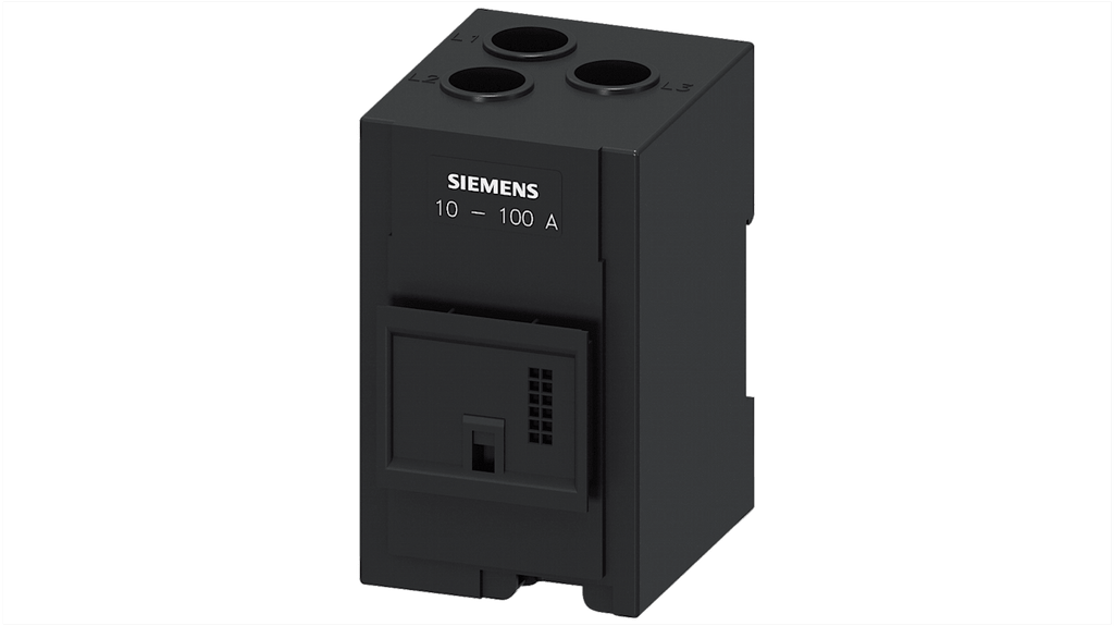 Trasformatore di corrente Siemens, corrente nominale 10-100 A, montaggio autonomo, circuito principale con trasformatore diretto, circuito ausiliario, sistema modulare, colore nero, altezza 94.1 mm, larghezza 54.8 mm, serie SIRIUS, tipo passaparete, alta qualità.