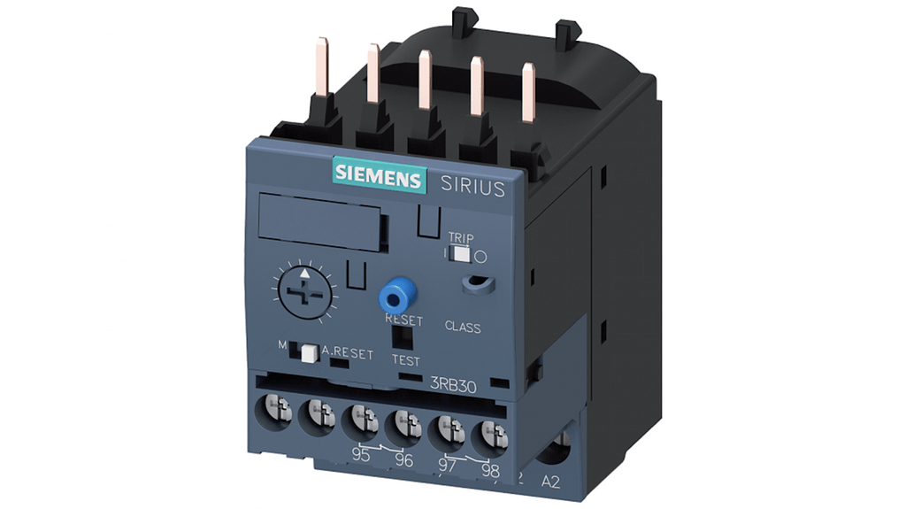 Relè di sovraccarico a stato solido Siemens, 1 NO + 1 NC, carico FLC 1,25 A, corrente nominale contatto 4 A, potenza nominale 0,37 kW, tensione di isolamento 690 V, grado di protezione IP20, resistenza alle sovratensioni 6 kV, montaggio contattore diretto, terminali a vite, protezione per le dita conforme a IEC 60529, formato S00, grado di inquinamento 3.