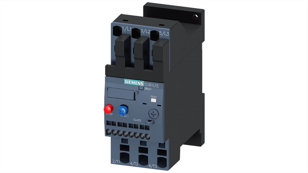 Relè di sovraccarico Siemens, protezione motore, carico nominale FLC 50 A, corrente contatto 4 A, configurazione 1NC/1NO, dimensione S3, circuito principale classe 10E, circuito ausiliario trasformatore a passaggio diretto, reset automatico manuale, terminale a molla, resistenza sovratensioni 8 kV, resistenza urti 8 g/11 ms, frequenza funzionamento 50-60 Hz, perdita di potenza 0,2 W.