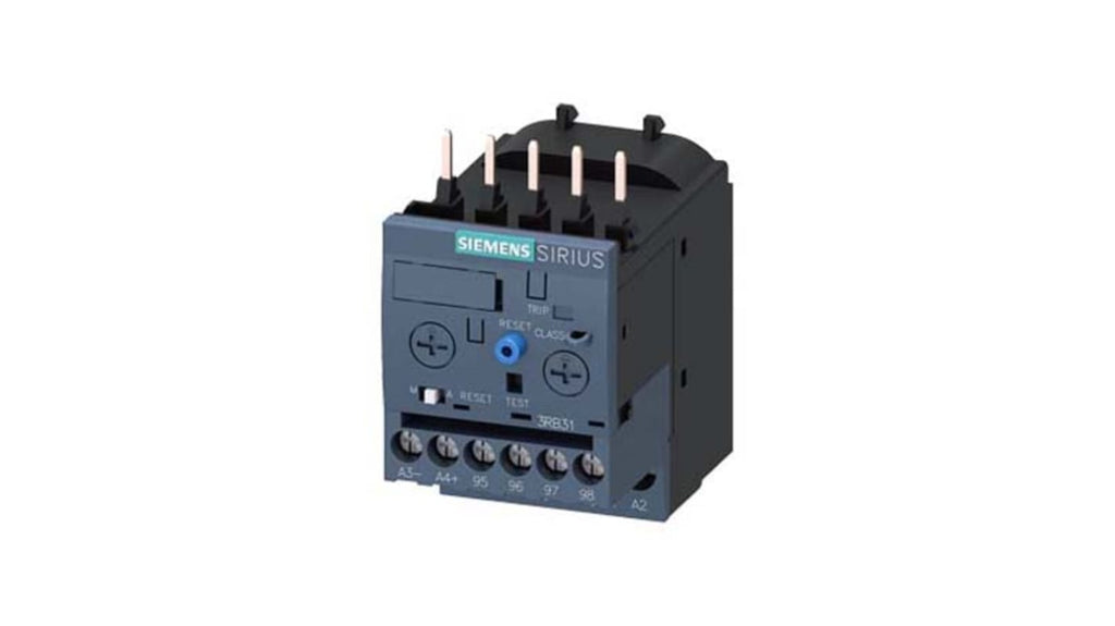 Relè di sovraccarico Siemens, 1 NO + 1 NC, carico FLC 4 A, 4 A. Gamma 3RB21, alimentatore interno, reset manuale/automatico, indicatore posizione commutazione, rilevamento guasti a massa integrato, reset elettrico remoto, funzione test, sensibilità guasto di fase/squilibrio di fase, funzionamento a classe di innesto selezionabile 5, 10, 20 e 30. Montaggio su guida DIN, dimensioni 72.5 mm x 45 mm x 64.8 mm, temperatura operativa -25 a +60 gradi Celsius, tensione nominale contatto 690 V c.a.