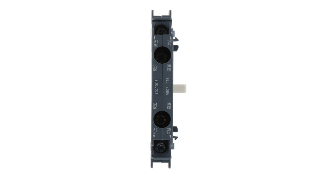 Contatto ausiliario Siemens, 2 contatti, 1 N/C + 1 N/A, montaggio laterale, serie 3RH1, corrente nominale 6 A, accetta cavi fino a 2 x 2,5 mm2, tipo terminale a vite, configurazione polo e corsa DP, non cortocircuitante, compatibile con contattori 3RH.