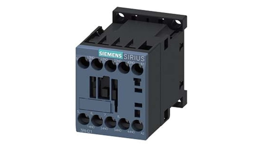 Relè contattore Siemens, serie 3RH2, 4 poli, 4NO, 10 A, bobina 240 V CA, tensione nominale contatto 690 V c.a., durata meccanica 30000000 cicli, montaggio a vite e snap-on su guida DIN da 35 mm, protezione IP20, collegamento terminali a vite per circuito ausiliario e di controllo, dimensione contattore S00, resistenza alle sovratensioni 6 kV, inclinazione +/- 22,5 gradi.