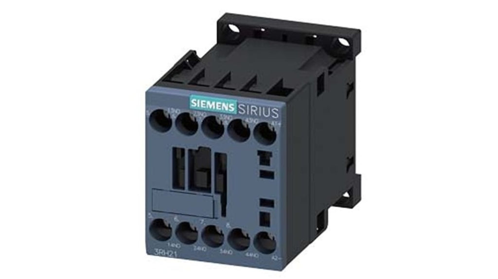 Relè contattore Siemens, serie 3RH2, 4 poli, 4NO, 10 A, bobina 230 V CC, tensione nominale contatto 690 V c.a., durata meccanica 30000000 cicli, montaggio a vite e snap-on su guida DIN da 35 mm, protezione IP20, collegamento terminali a vite, dimensione contattore S00, resistenza alle sovratensioni 6 kV, inclinazione +/- 22,5 gradi.