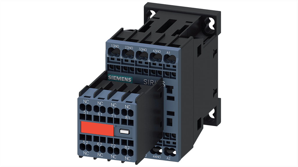 Contattore Siemens per la commutazione di segnali di controllo, 4NC + 4NO, corrente nominale 3 A, tensione di controllo 230 V c.a., frequenza di funzionamento 50-60 Hz, dimensione S00, collegamento elettrico tramite terminal a molla, grado di protezione IP20, conforme a normative IEC e UL/CSA, designazione terminale standardizzata, tecnologia di collegamento affidabile.
