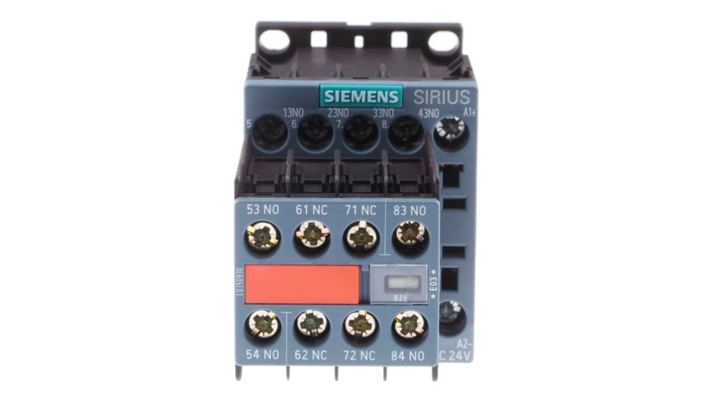 Contattore Siemens, serie 3RH2, 6NO + 2NC, 10 A, bobina 24 V c.c., resistenza alla tensione di sovratensione 6 kV, morsetti a vite, dimensioni 57,5 x 45 x 116 mm, grado di protezione IP20, vita utile meccanica fino a 10 milioni di cicli, temperatura operativa da -25 a +60 gradi, montaggio su guida DIN standard 35 mm. Codice costruttore 3RH2262-1BB40.