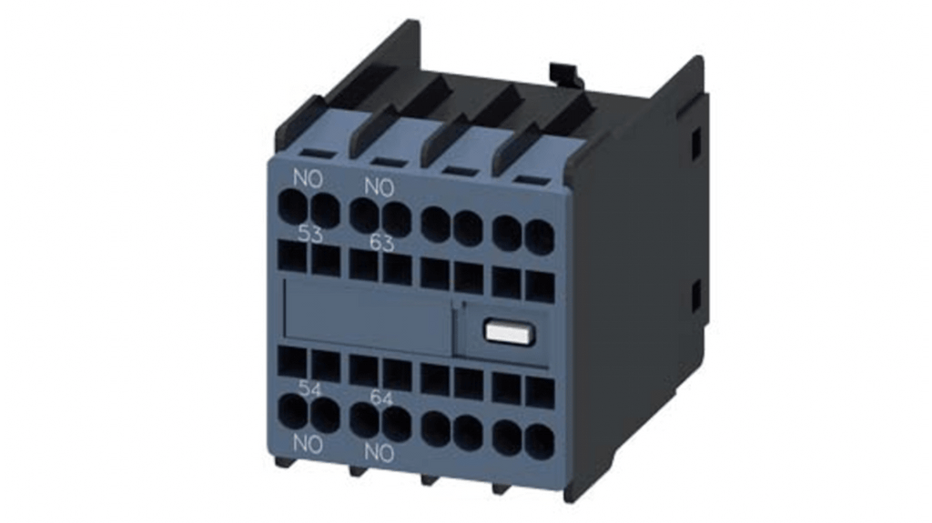 Blocco interruttore ausiliario Siemens, 2 contatti, 2 NA, montaggio a innesto, serie 3RH29, approvazione SUVA, adatto per relè contattore e contattore di potenza, classe di protezione IP20. Specifiche: numero di contatti 2, configurazione stato normale 2 NA, tipo di montaggio a innesto.