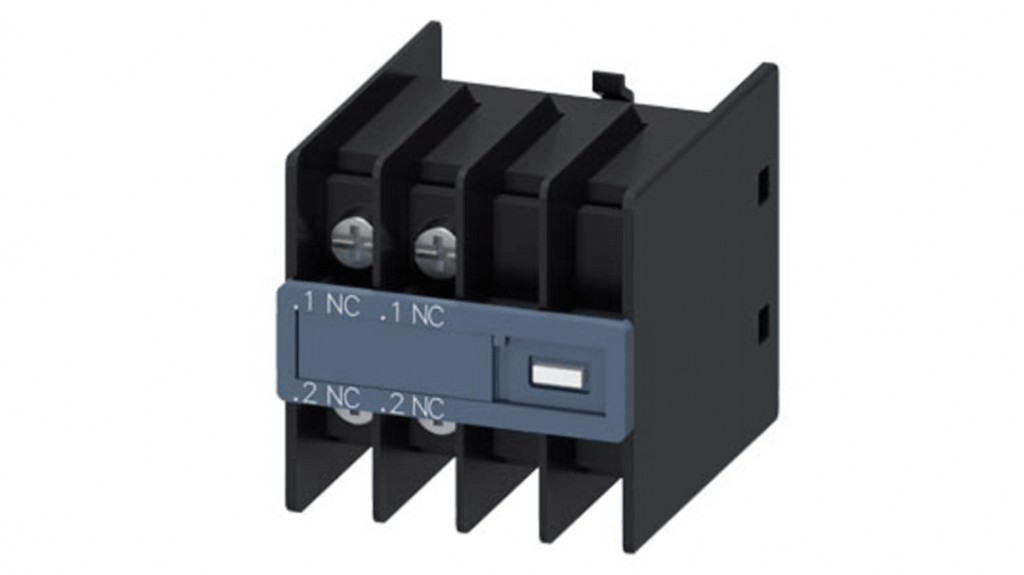 Blocco interruttore ausiliario Siemens, 2 contatti, 2 NC, montaggio a innesto, serie 3RH29. Collegamento a innesto per cavo ad anello, approvazione EAC. Specifiche: numero di contatti 2, configurazione stato normale 2 NC, tipo di montaggio a innesto, range SIRIUS, serie 3RH29. Codice costruttore 3RH29114HA02.