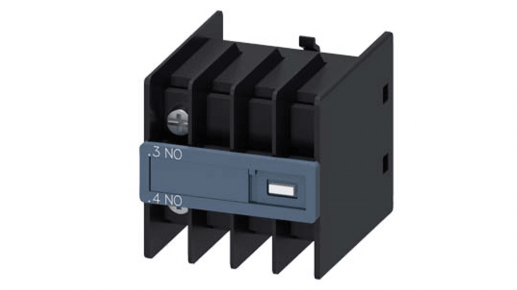 Blocco interruttore ausiliario Siemens, 1 contatto, 1NO, montaggio a innesto, serie 3RH2, codice costruttore 3RH29114HA10. Adatto per relè contattore e contattore di potenza, collegamento a innesto per cavo ad anello, approvazione EAC. Specifiche: numero di contatti 1, configurazione stato normale 1NO, tipo di montaggio montaggio a innesto, range SIRIUS.
