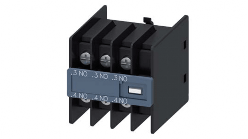 Blocco interruttore ausiliario Siemens, 3 contatti, 3 NA, montaggio a innesto, serie 3RH29. Collegamento a innesto per cavo ad anello, approvazione EAC. Specifiche: numero di contatti 3, configurazione stato normale 3 NA, tipo di montaggio a innesto, range SIRIUS, serie 3RH29.