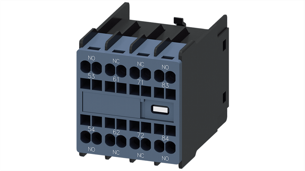 Blocco interruttore ausiliario Siemens, 4 contatti, 2 NA + 2 NC, montaggio a innesto, serie 3RH29, classe di protezione IP20, approvazione EAC, compatibile con relè contattore e contattore di potenza. Codice costruttore 3RH29162XA220MA0.