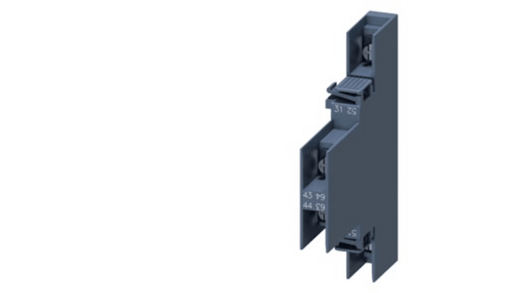 Blocco interruttore ausiliario Siemens, 2 contatti, 1 NA + 1 NC, montaggio a innesto, compatibile con relè contattore e contattore di potenza, collegamento a innesto per cavo ad anello, approvazione EAC, serie 3RH29, range SIRIUS.