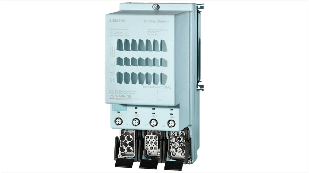Starter per motore manuale Siemens, potenza nominale 0,9 kW, tensione nominale 400 V c.a., corrente nominale 2 A, grado di protezione IP65, commutazione elettronica, protezione completa del motore, funzionamento da 200 V a 400 V, contatto di commutazione a stato solido, 3 poli. Codice costruttore 3RK1304-5KS70-2AA0.