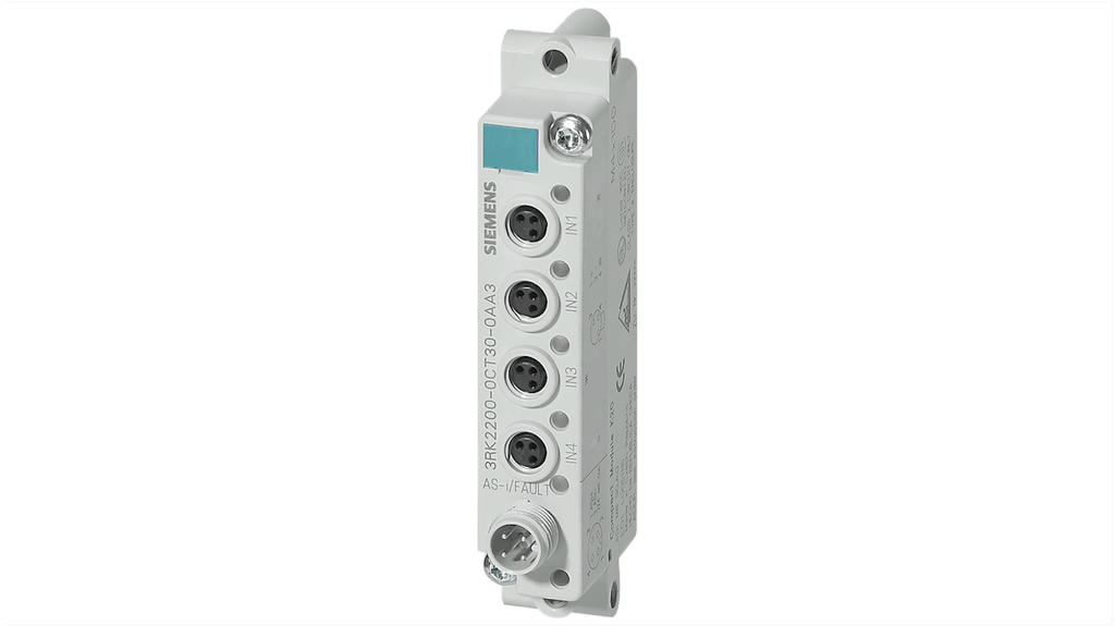 Modulo I/O digitale Siemens, serie 3RK2100, per moduli I/O digitali, IP67 - K20. Design compatto, dimensioni 100 x 22,5 x 120 mm, tipo ingresso DQ, tipo uscita digitale. Installazione estremamente compatta, design non incapsulato. Adatto per applicazioni di macchine nel campo dell'ingegneria di produzione. Codice costruttore 3RK21001CT300AA3.