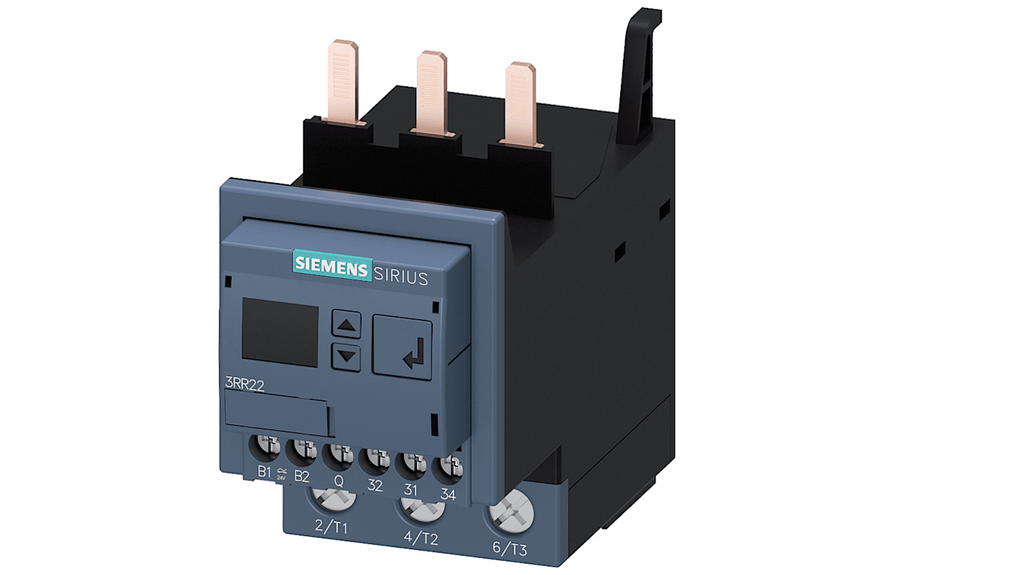 Relè di monitoraggio corrente Siemens, modello 3RR2243-1FA30, configurazione SPDT, alimentazione 24 V AC/DC, monitoraggio overshoot corrente e guasto fase, rottura cavo con ritardo 0-99 s, soppressione impulsi 0-30 s, classe di protezione IP20, gamma di corrente 8-80 A, temperatura operativa da -25 a +60 gradi, larghezza 55 mm, altezza 99 mm, tipo di terminale a vite.